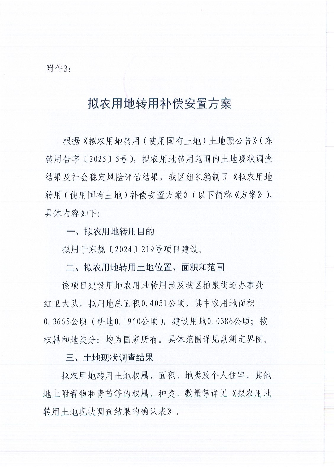 拟农用地转用(使用国有土地)补偿安置方案公告