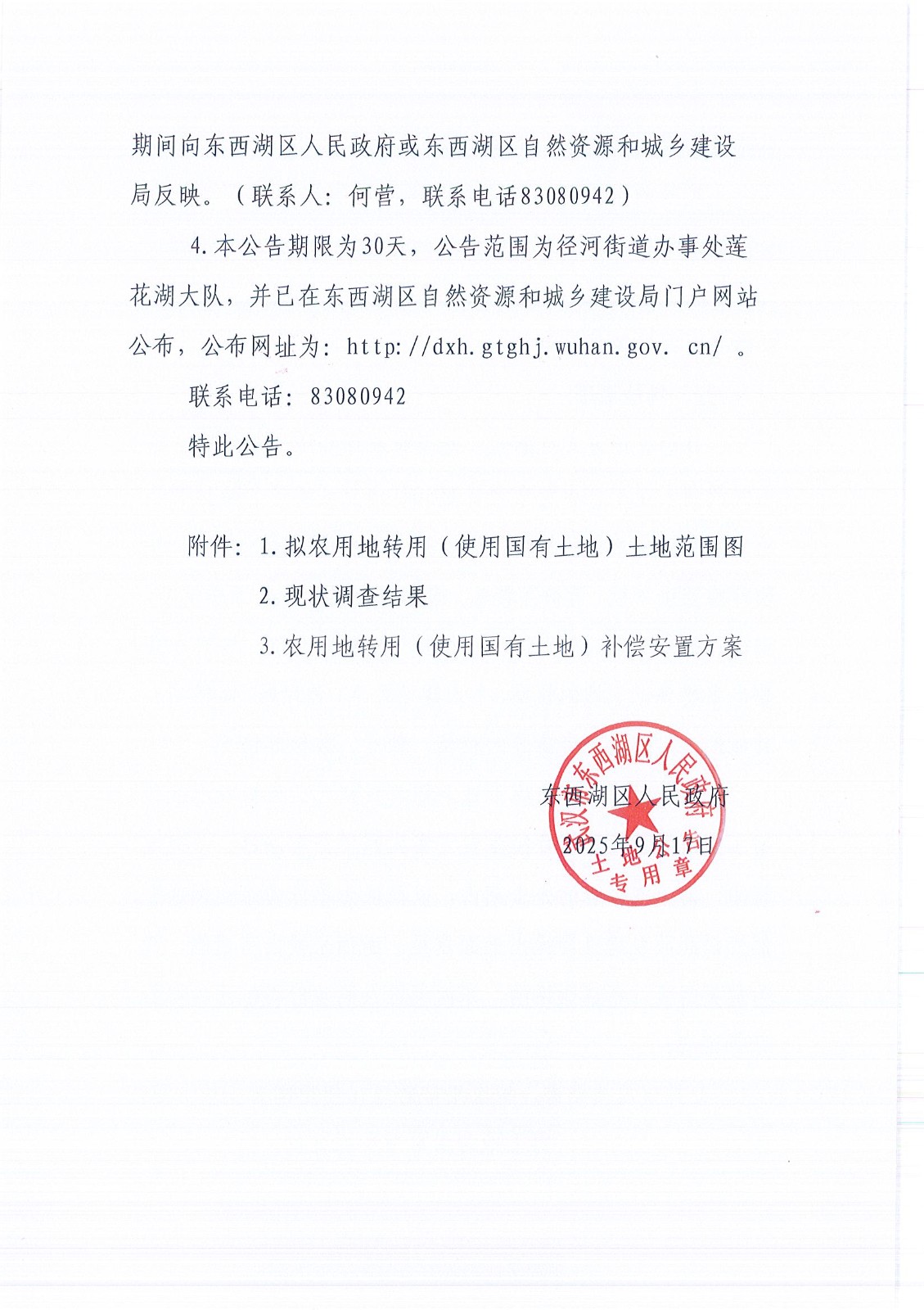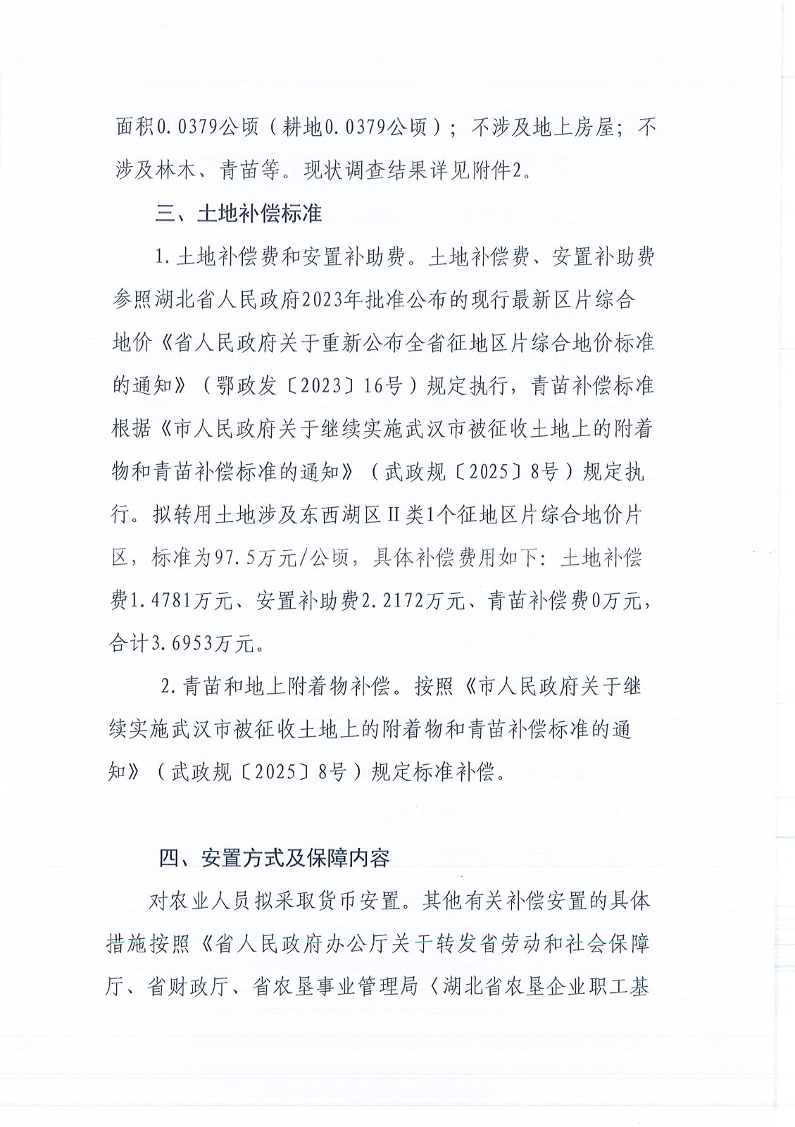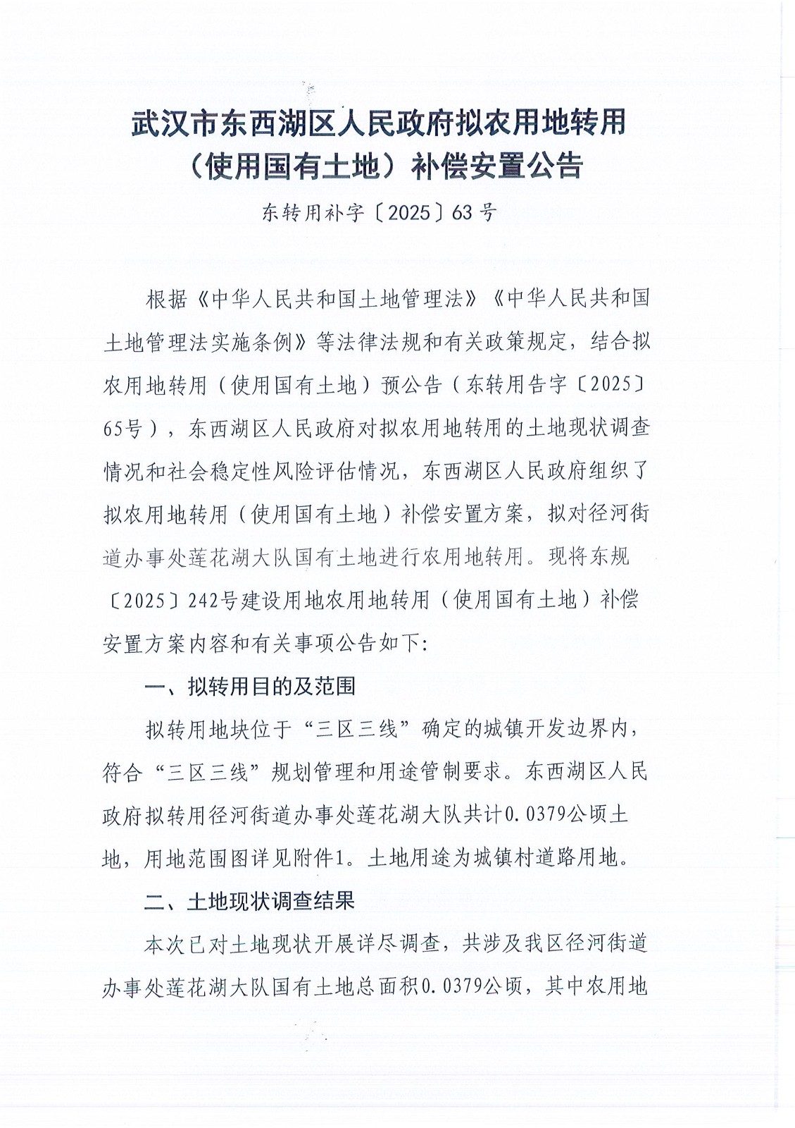 武汉市东西湖区人民政府拟农用地转用(使用国有土地)补偿安置公告(东转用补字〔2025〕63号)