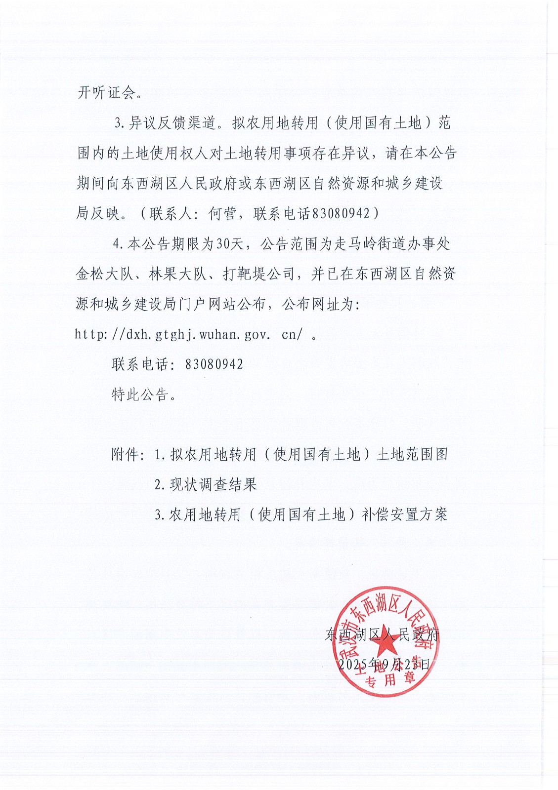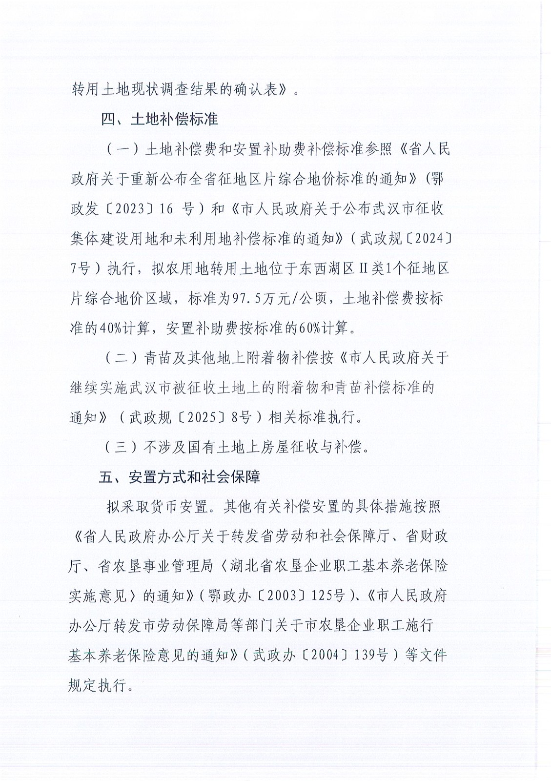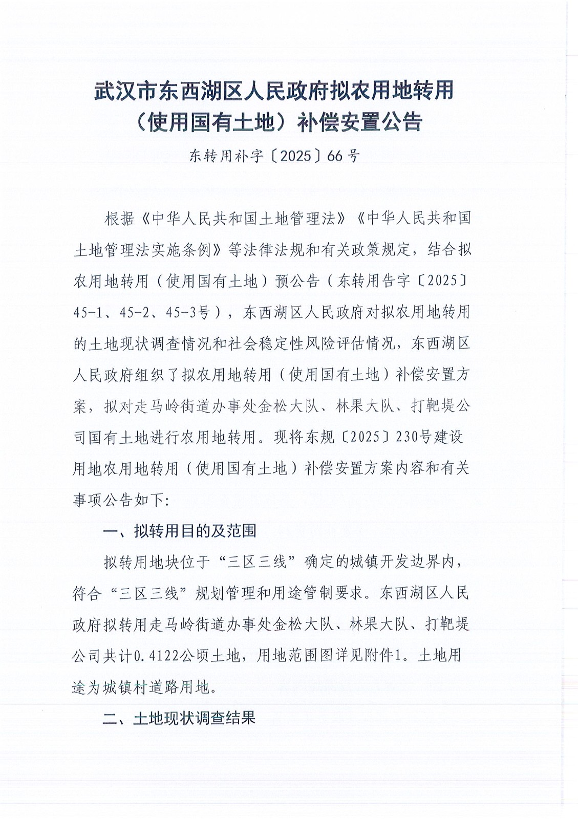 武汉市东西湖区人民政府拟农用地转用(使用国有土地)补偿安置公告(东转用补字〔2025〕66号)