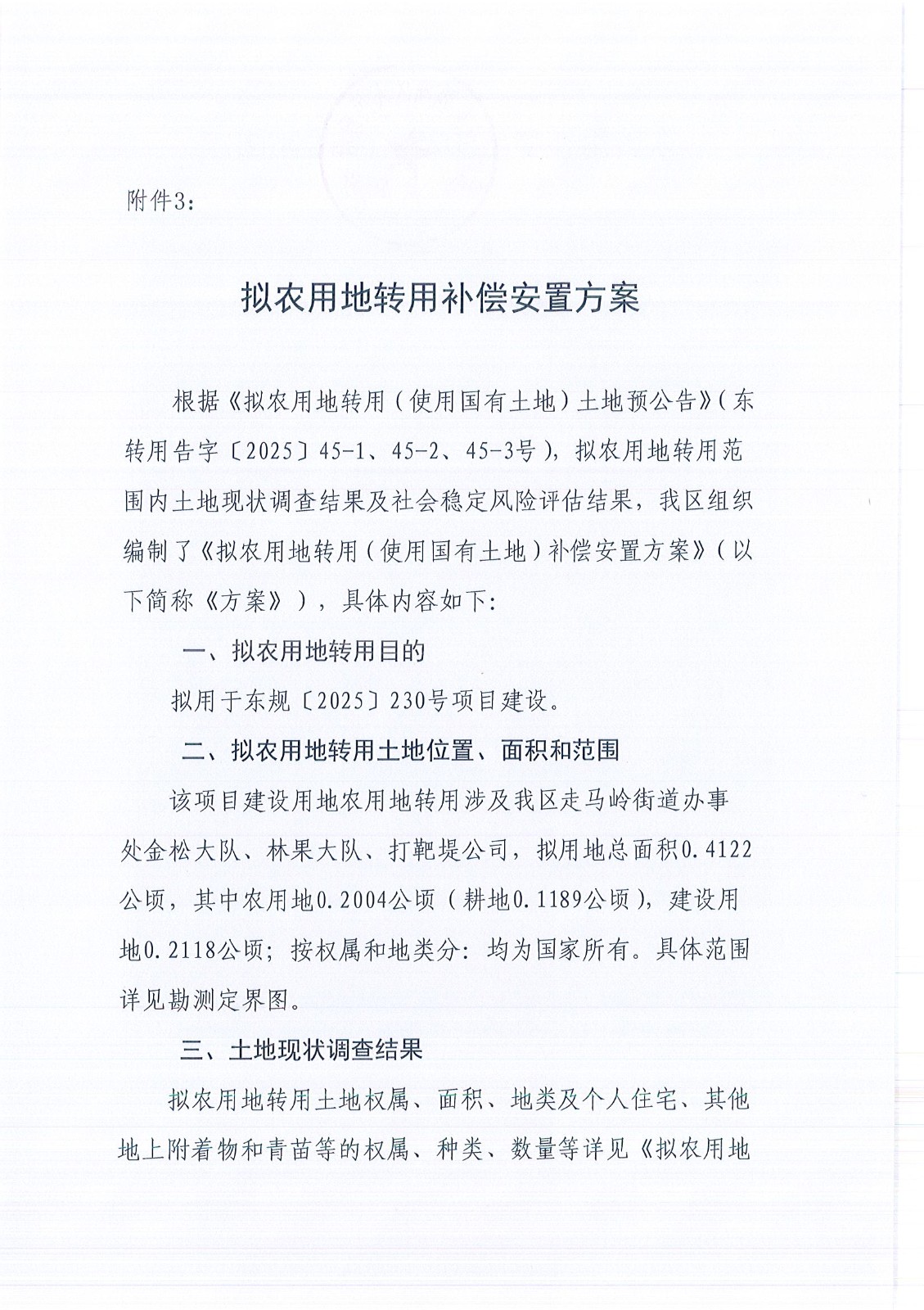 拟农用地转用(使用国有土地)补偿安置方案公告