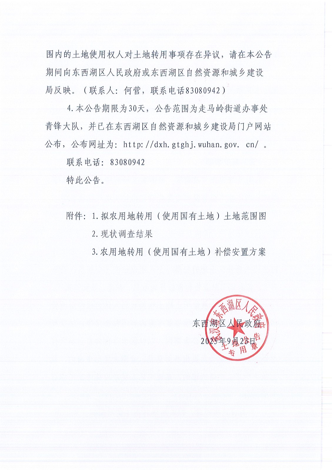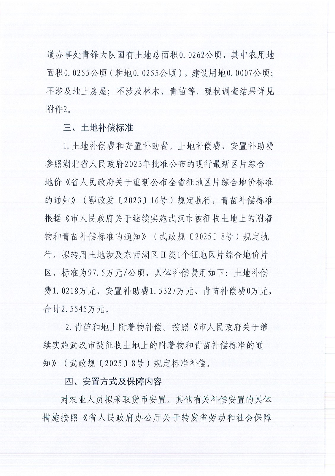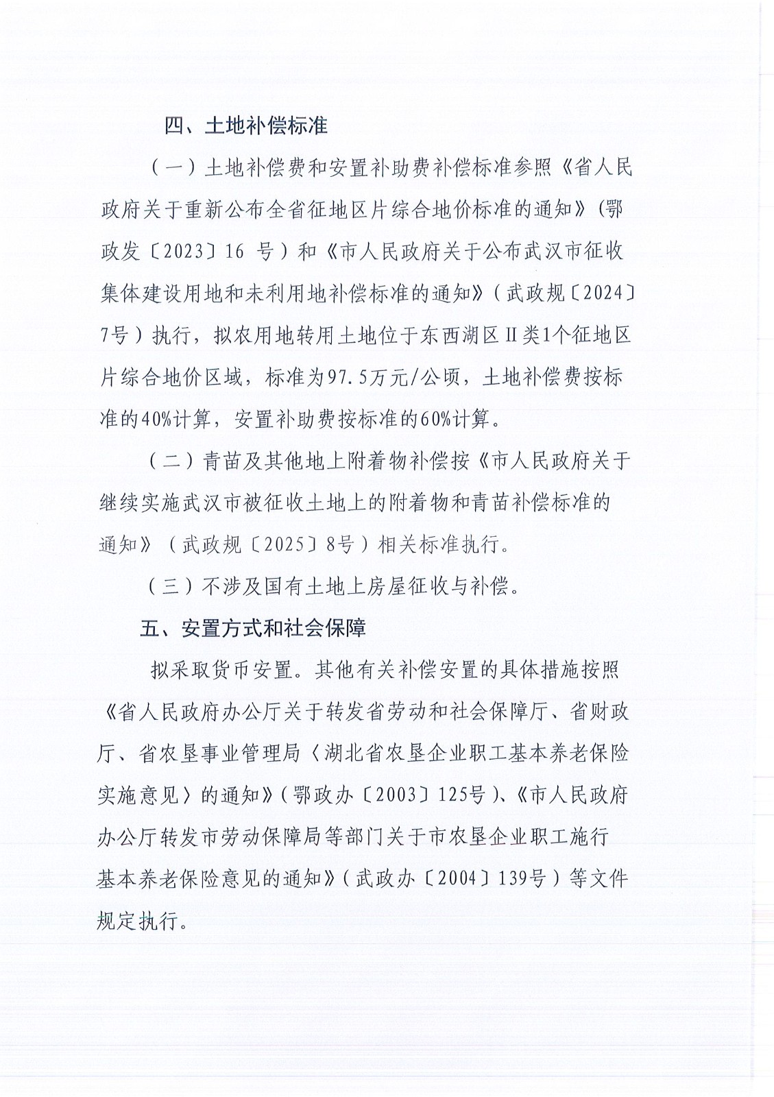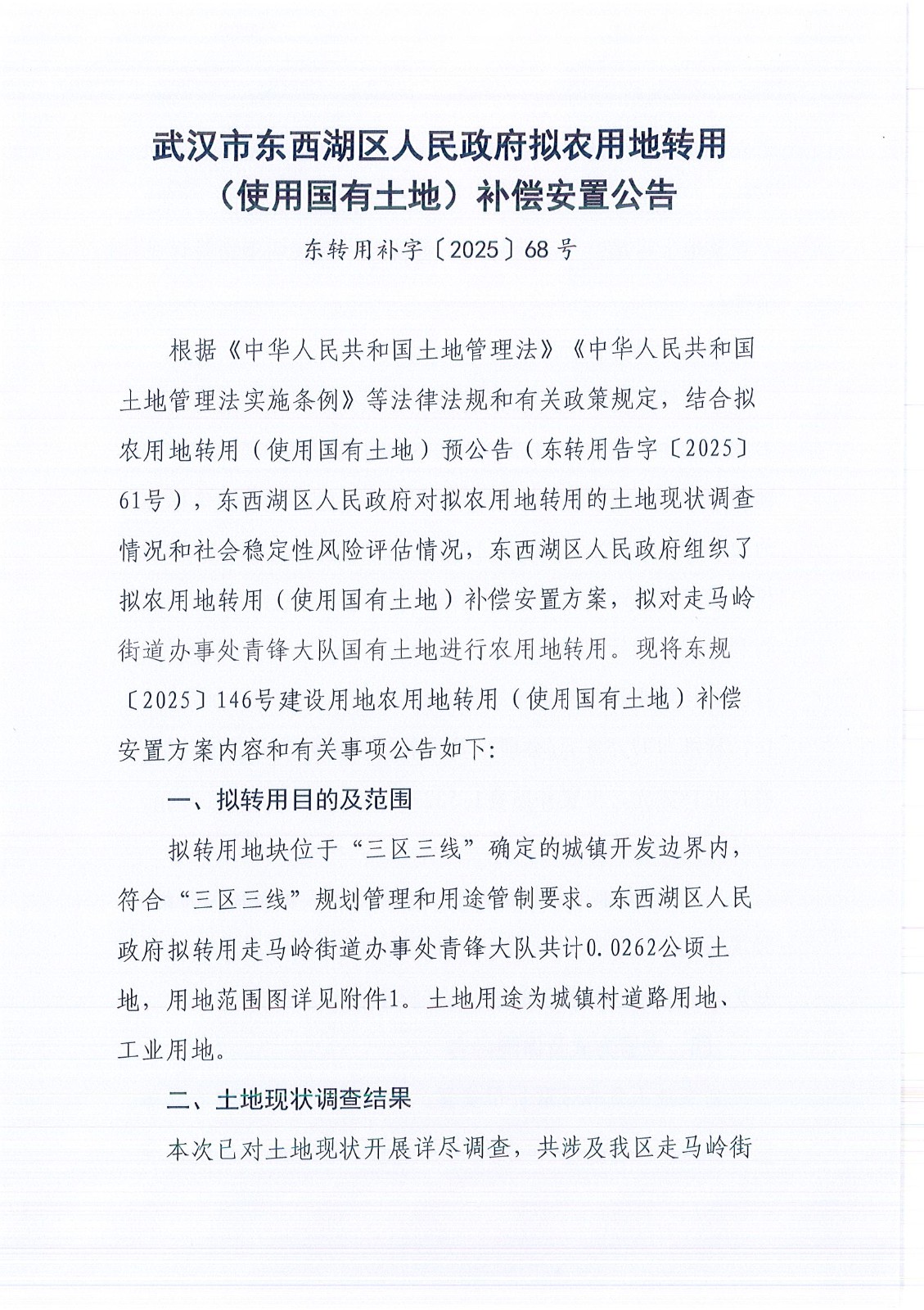 武汉市东西湖区人民政府拟农用地转用(使用国有土地)补偿安置公告(东转用补字〔2025〕68号)