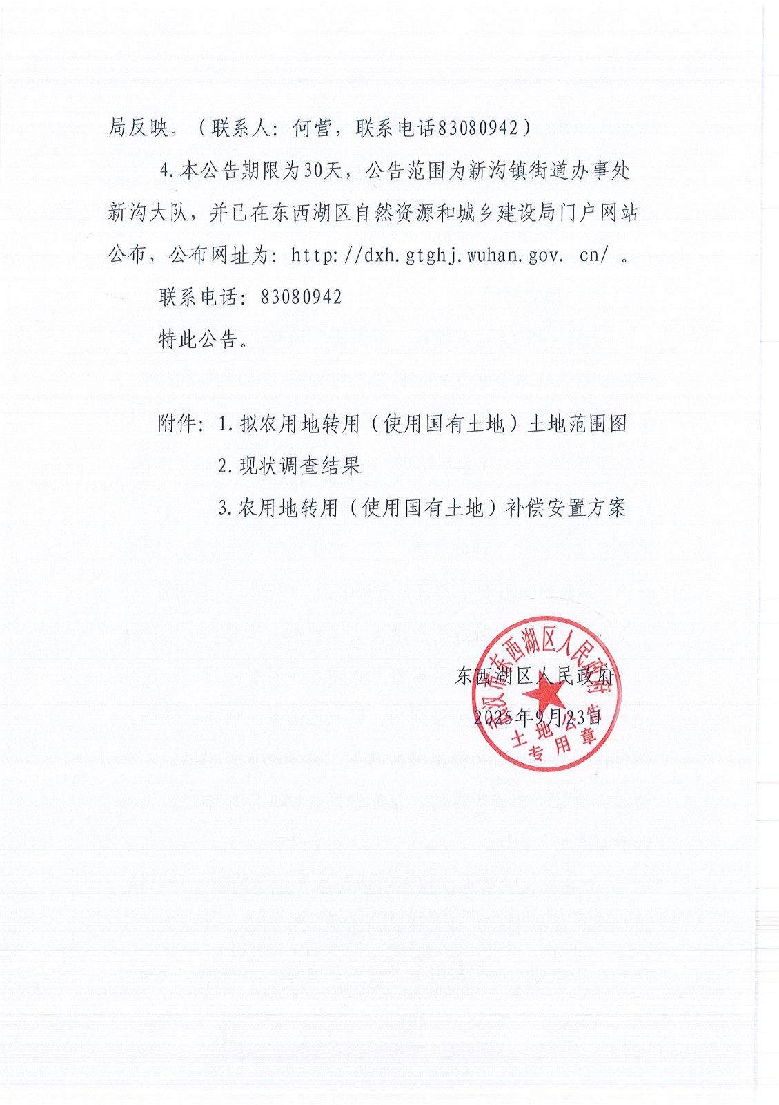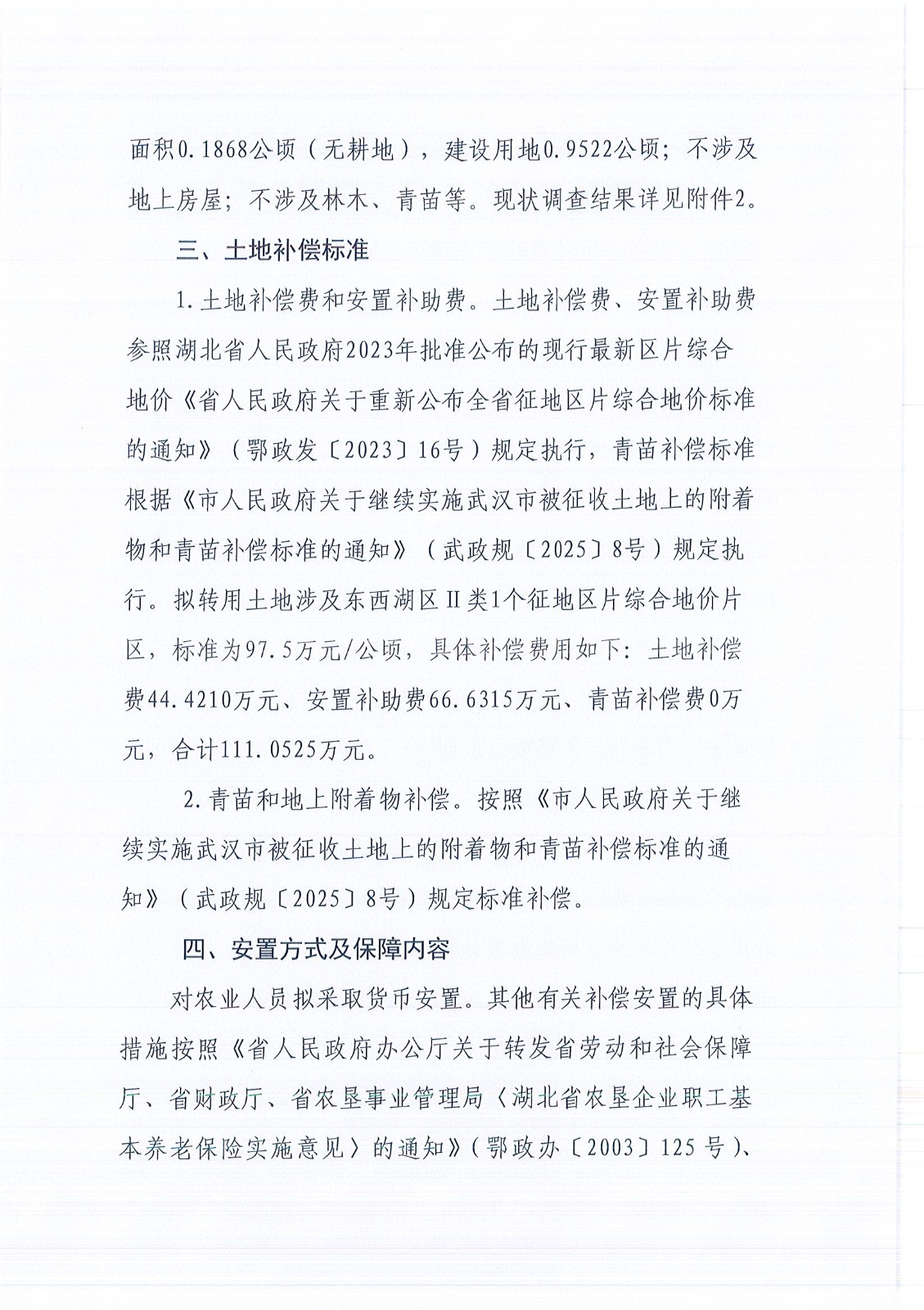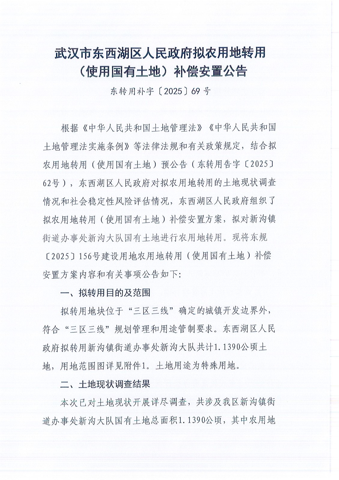 武汉市东西湖区人民政府拟农用地转用(使用国有土地)补偿安置公告(东转用补字〔2025〕69号)