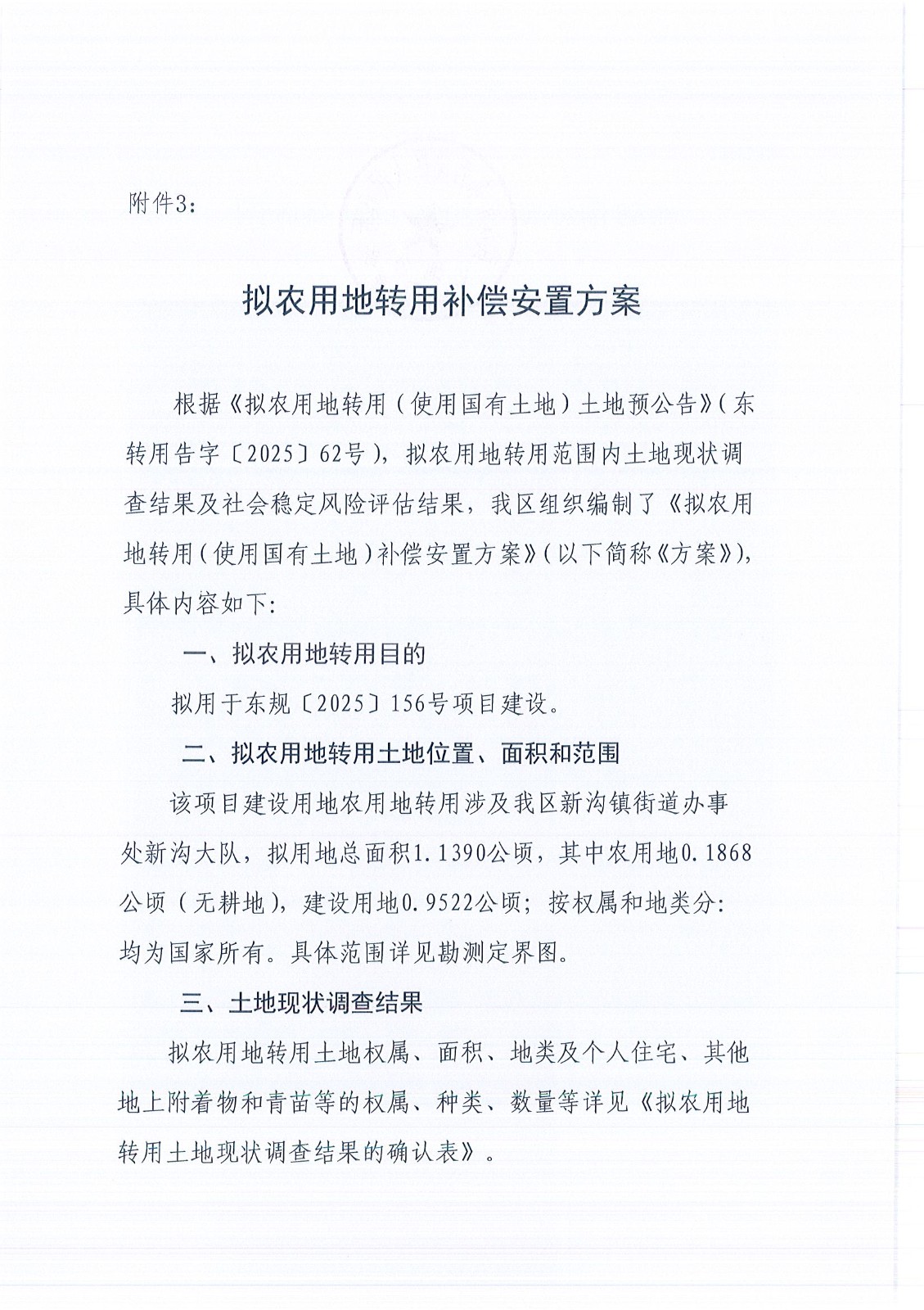 拟农用地转用(使用国有土地)补偿安置方案公告
