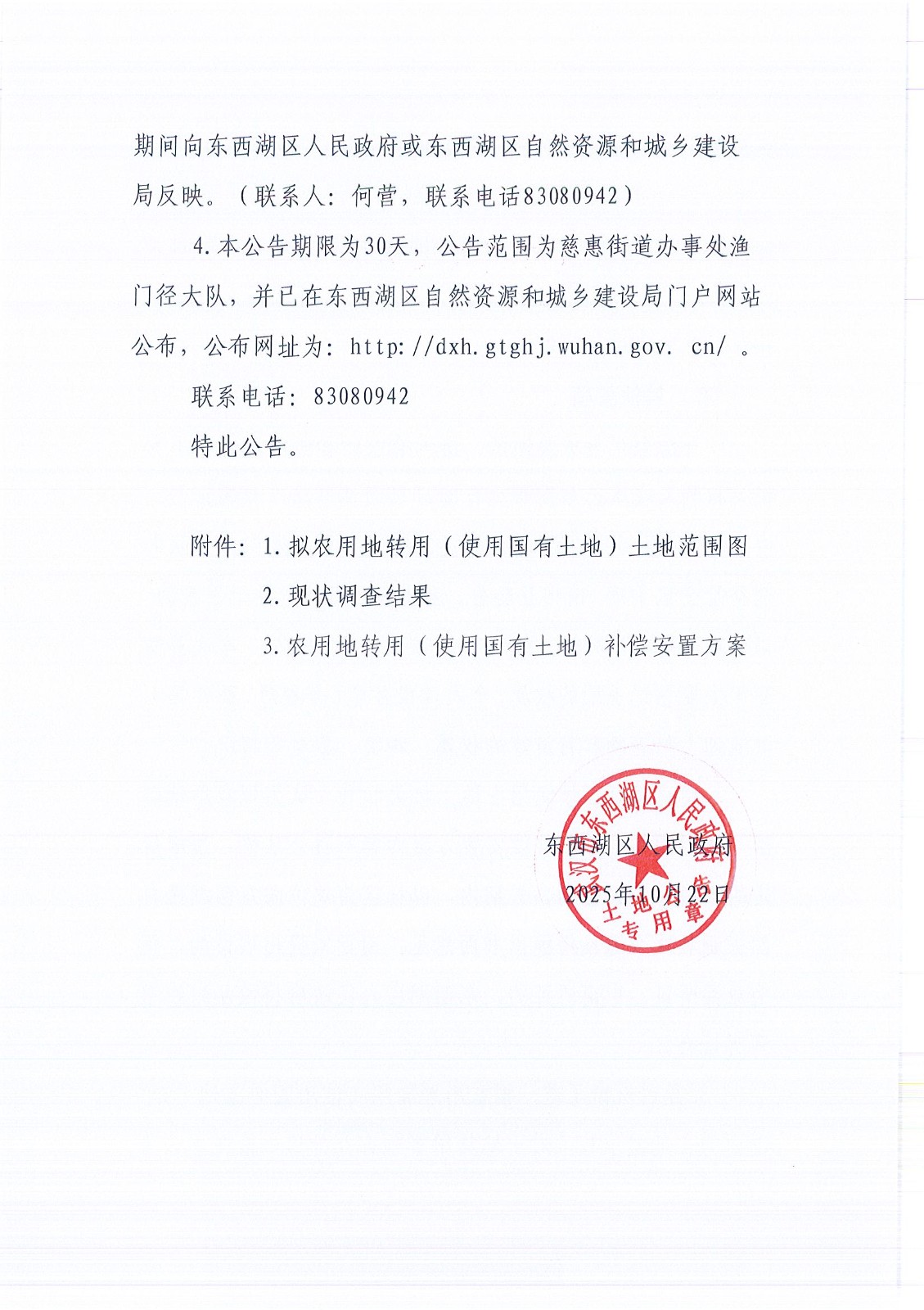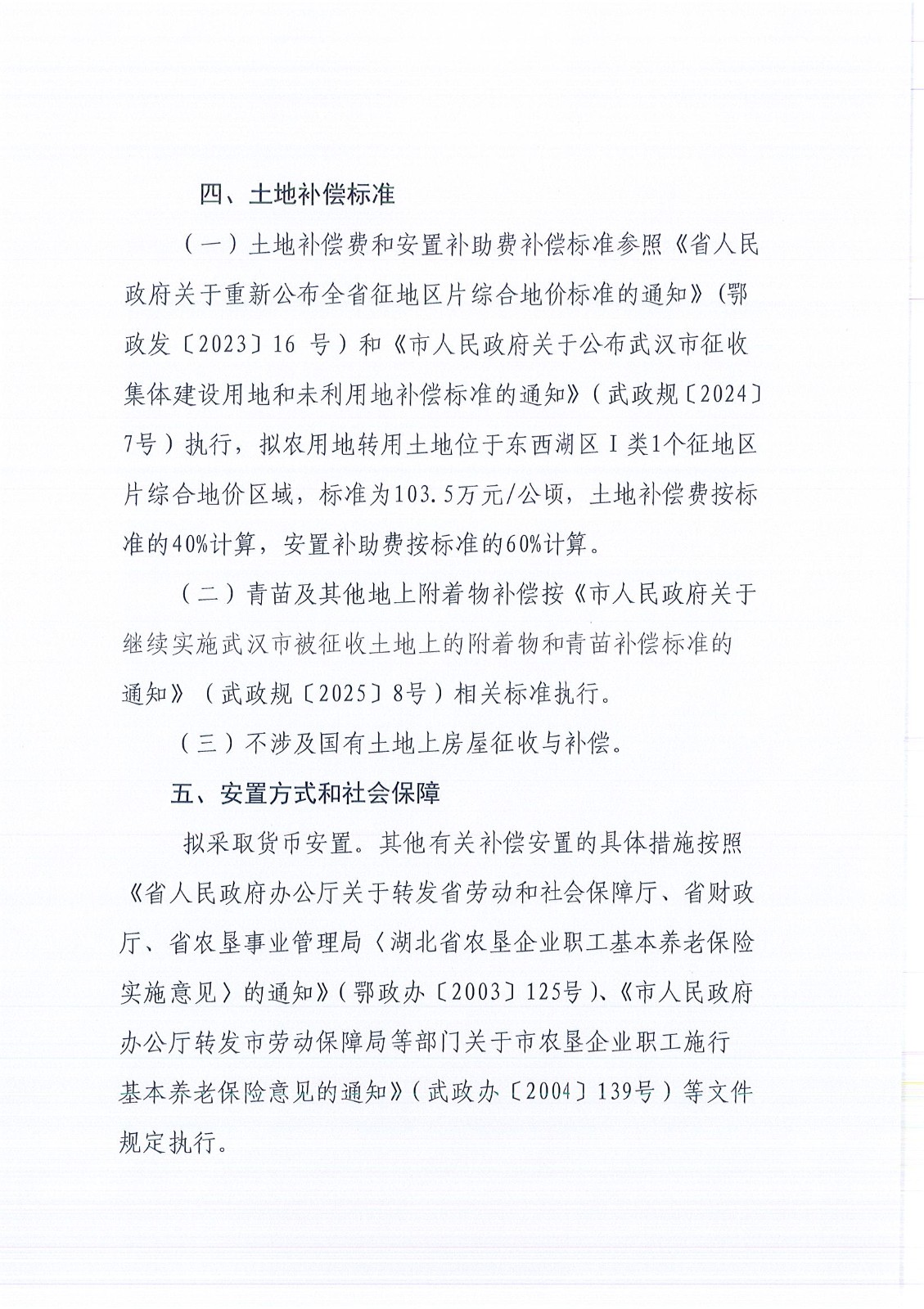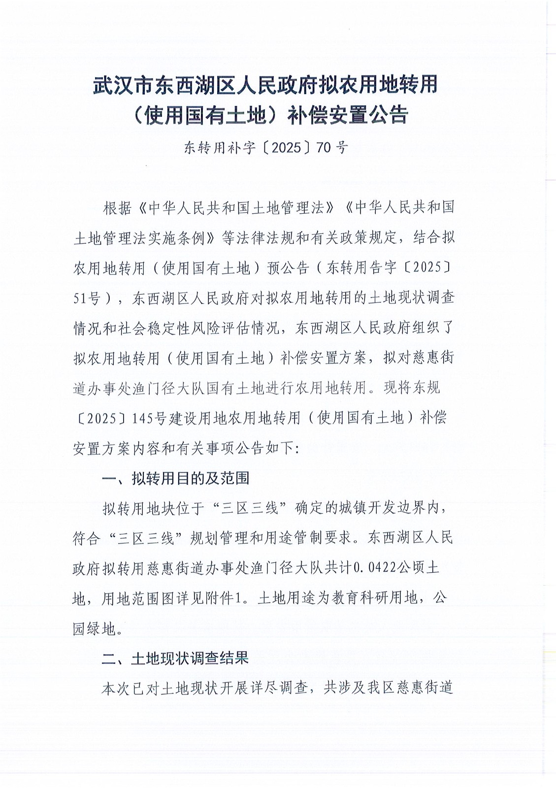 武汉市东西湖区人民政府拟农用地转用(使用国有土地)补偿安置公告(东转用补字〔2025〕70号)