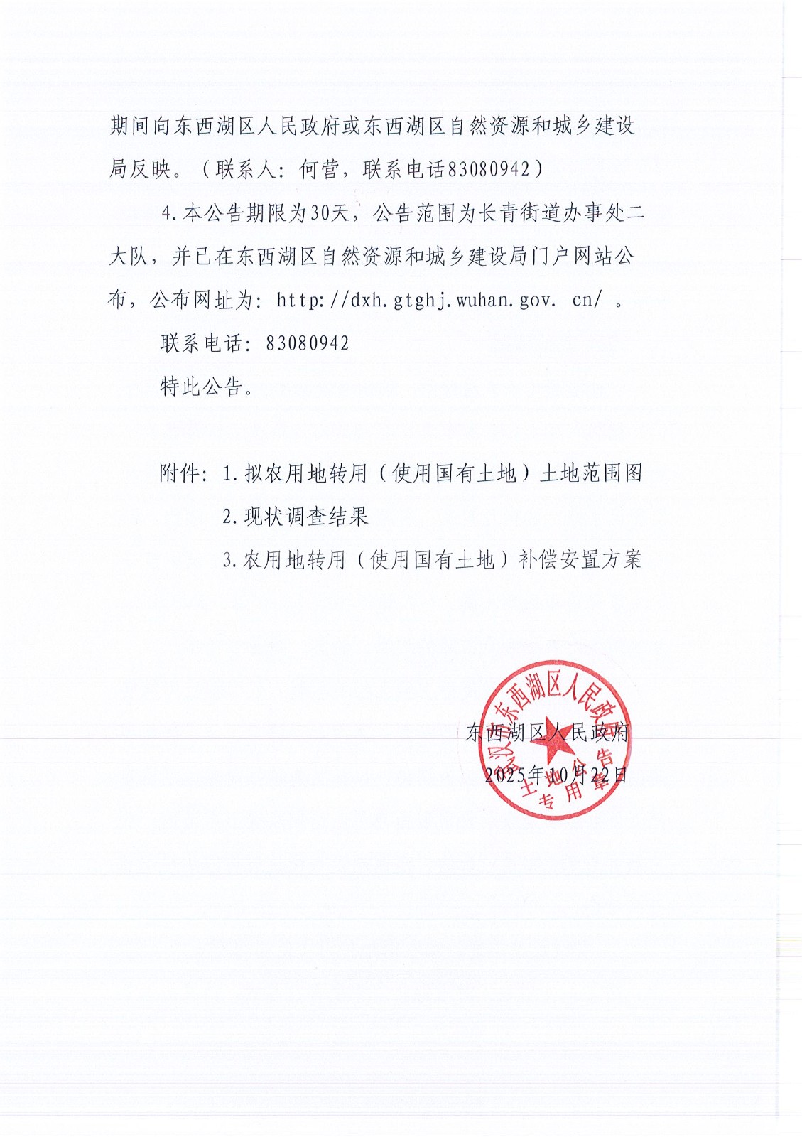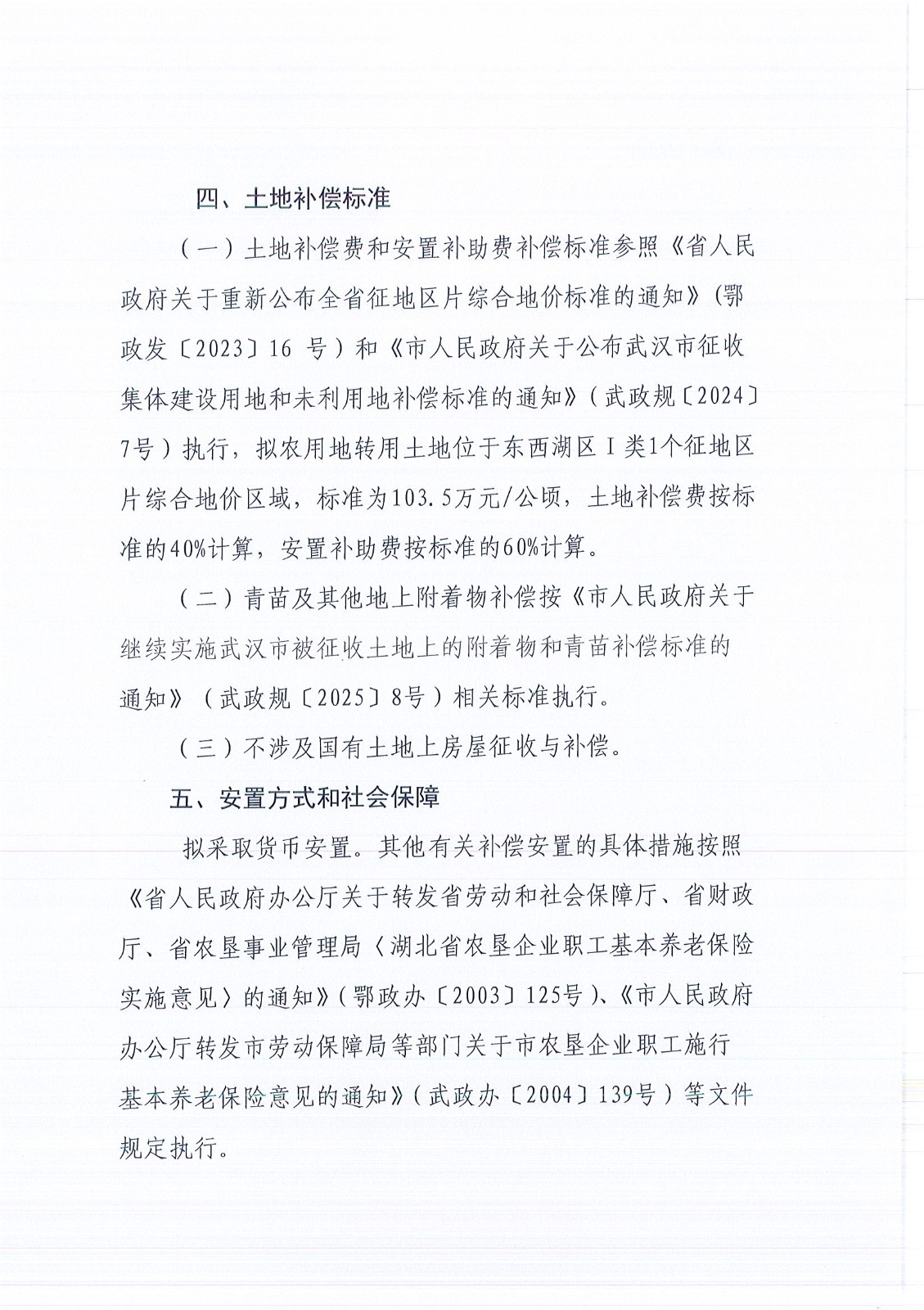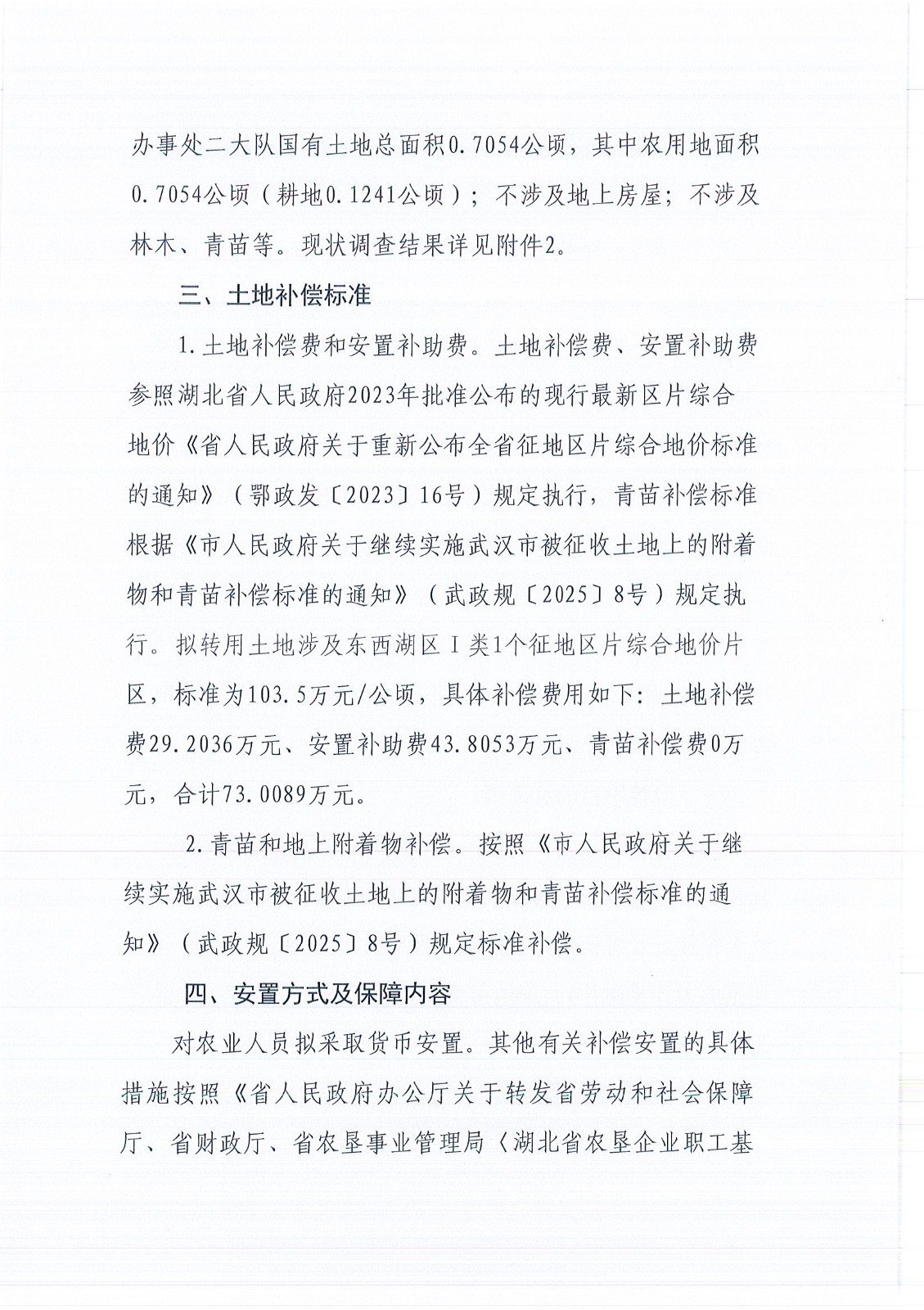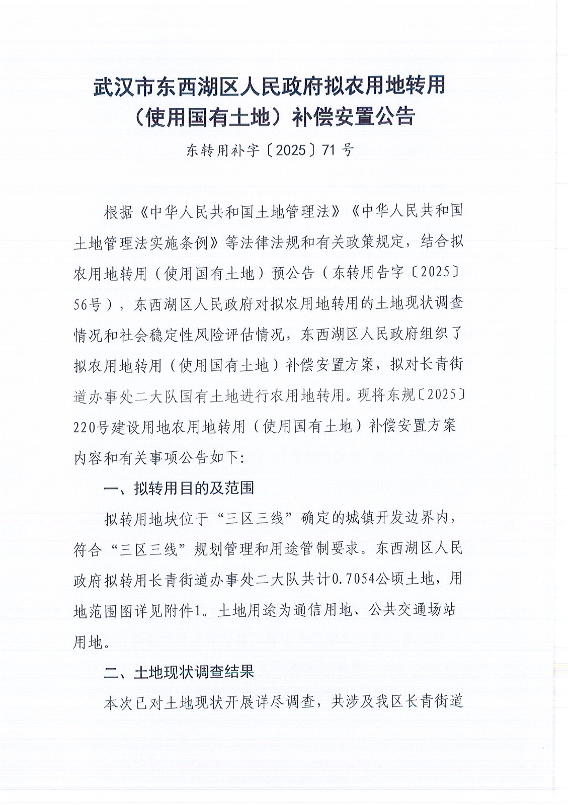 武汉市东西湖区人民政府拟农用地转用(使用国有土地)补偿安置公告(东转用补字〔2025〕71号)