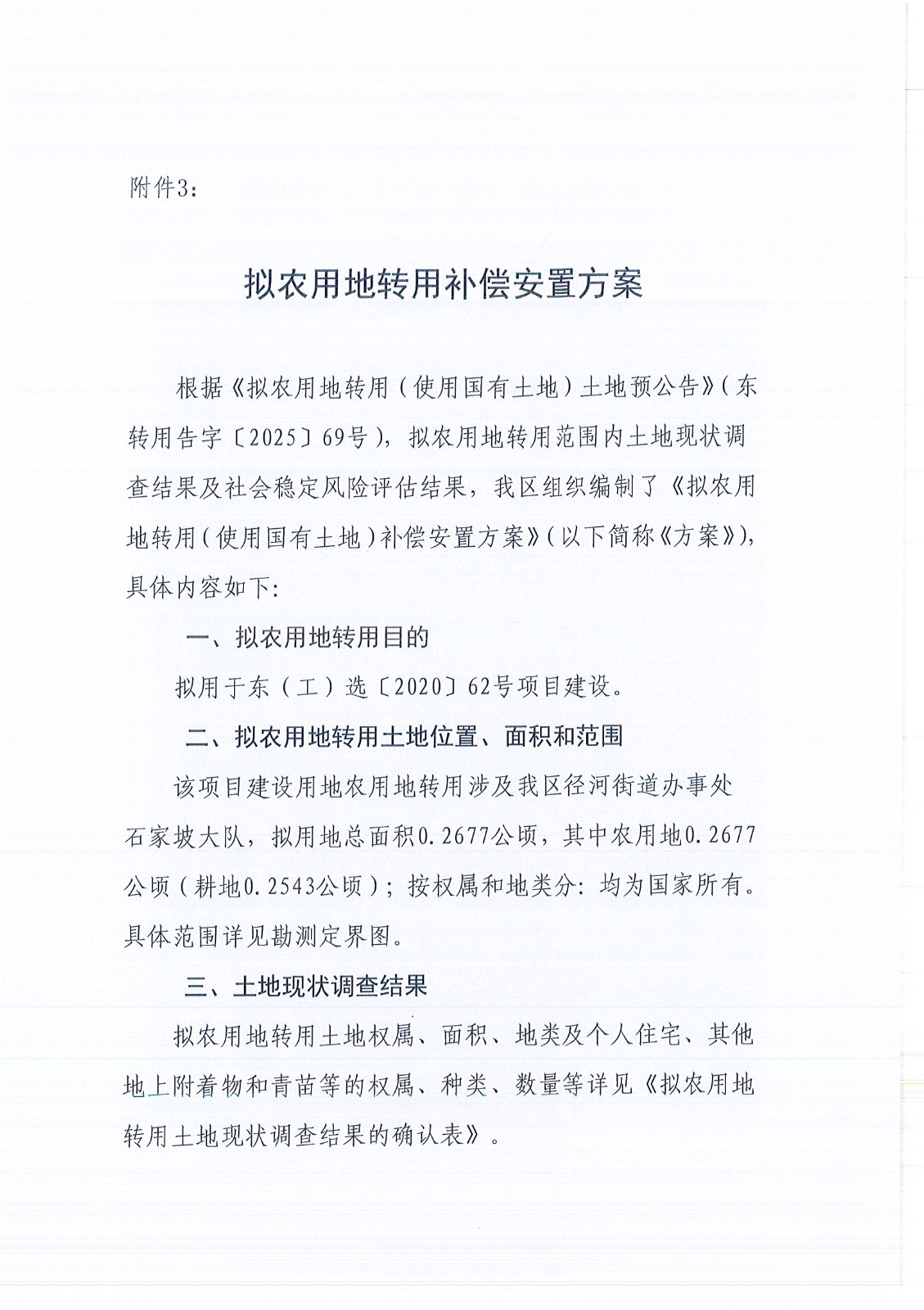 拟农用地转用(使用国有土地)补偿安置方案公告