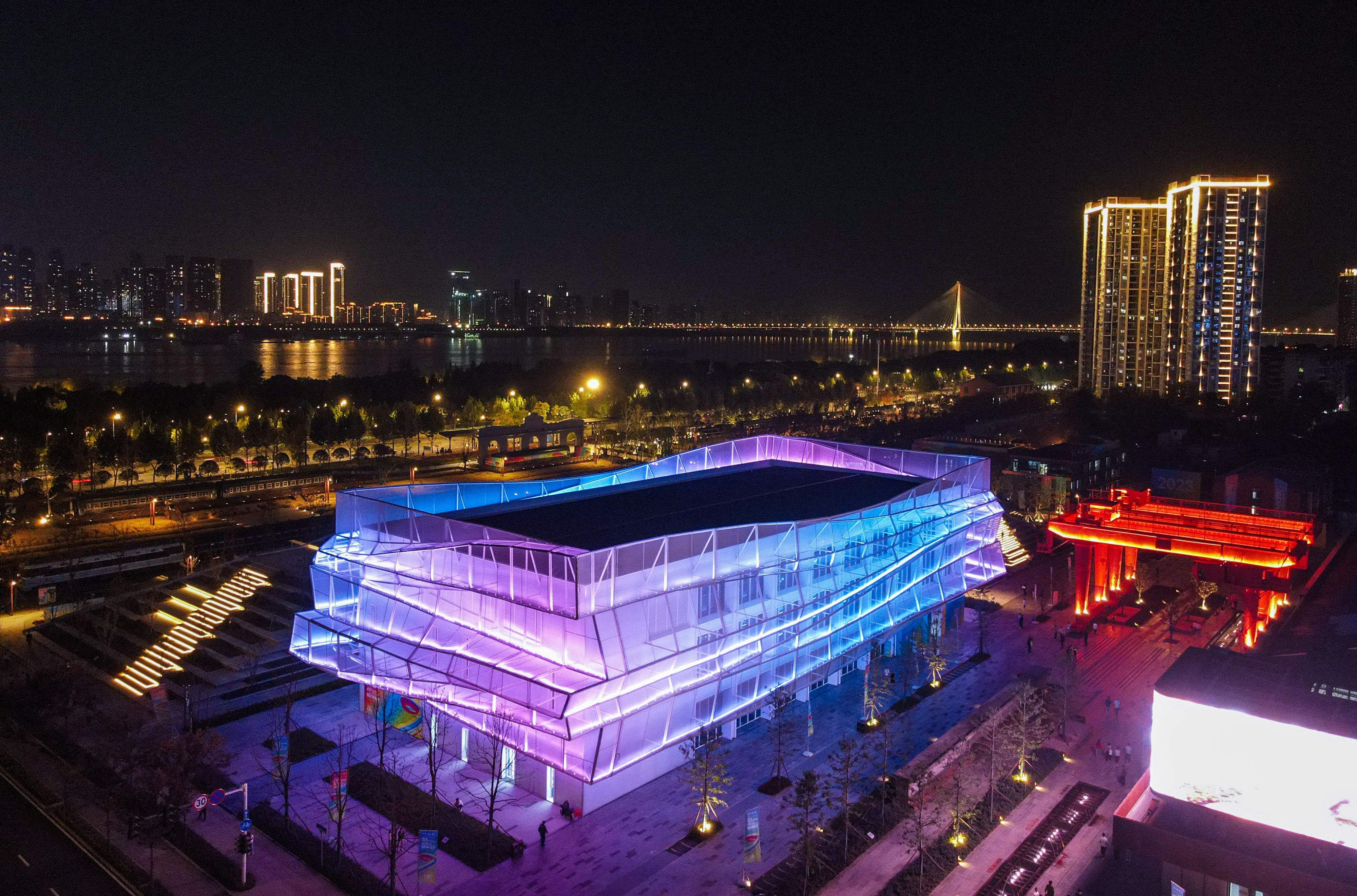 2023武汉设计双年展开幕式主场馆夜景图。通讯员供图
